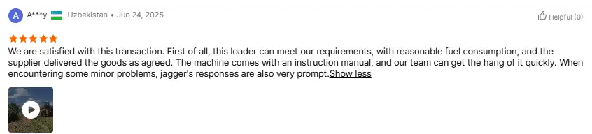 Rusiyadan gələn müştəri dərhal 5 ton yükləyicinin test sürücüsünü aldıqdan sonra aldı. Dedilər: "Bu yükləyici gözlədiyimdən daha da manevr edilə bilər. Heç bir jolt olmadan rəvan işləyir." Bu da patronumuz tərəfindən təsdiq edilmişdir. Satış cavablarınız çox sürətli və məsuliyyət daşıyır. Etibarlı bir tərəfdaşsınız.