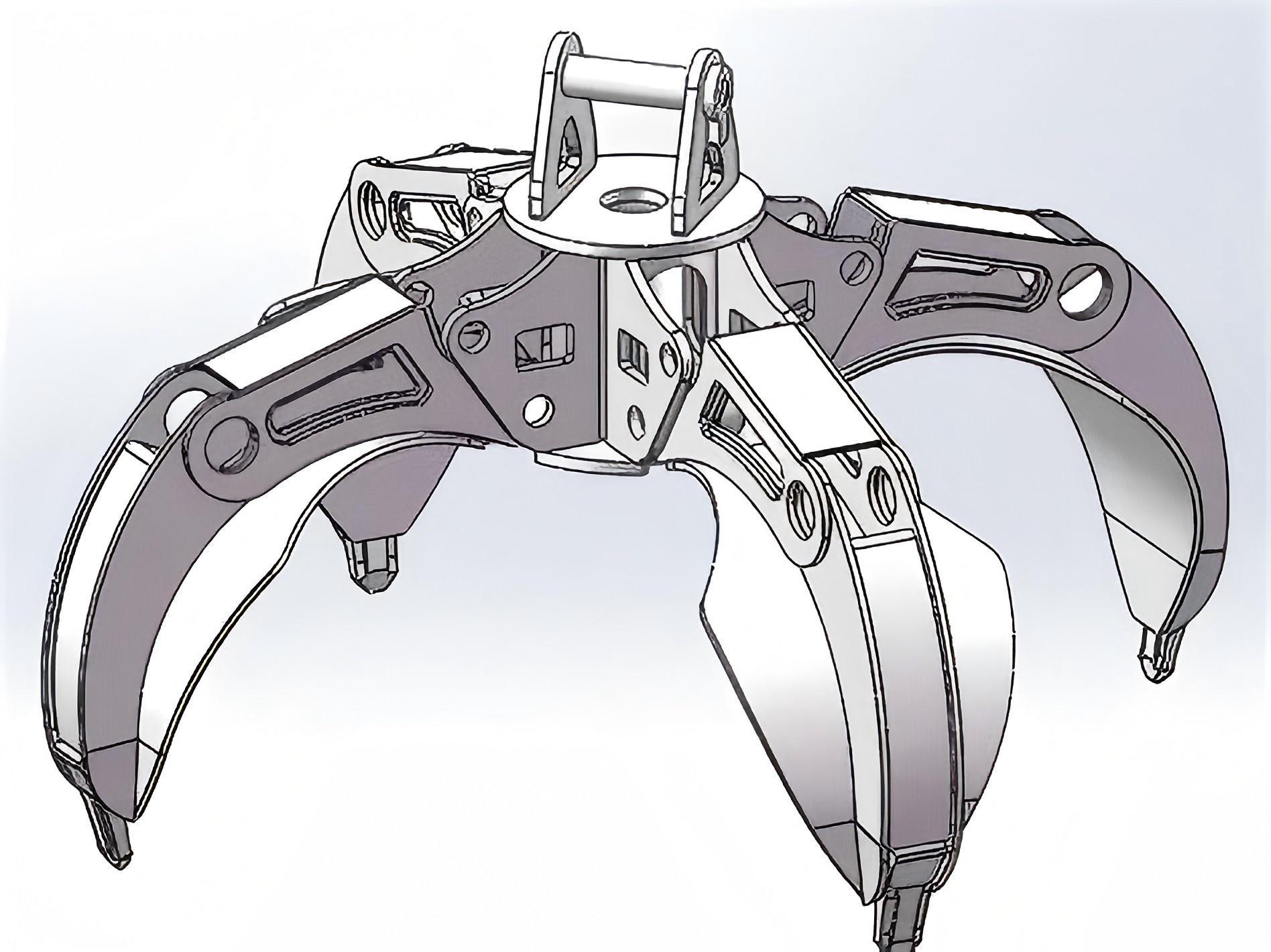 Struktur dizayn da daha ağıllıdır. Beş ləçəkdən tutma plakasının üstü 72 dərəcə bucaqda edilir və qırıntı poladdan tutarkən daha hətta güc paylamasını təmin etmək üçün qabırğalar və möhkəmləndirmə blokları əlavə olunur. Əvvəllər, 15 ton ekskavator, sürüşmə dəmirini yükləmək və boşaltmaq üçün bir tonlu bir çömçə istifadə etdi, tez-tez "belini yanıb-sönən" dən qorxur. İndi bu, inamla 2.3 tona qədər tuta bilər - bu demək olar ki, öz həddidir.